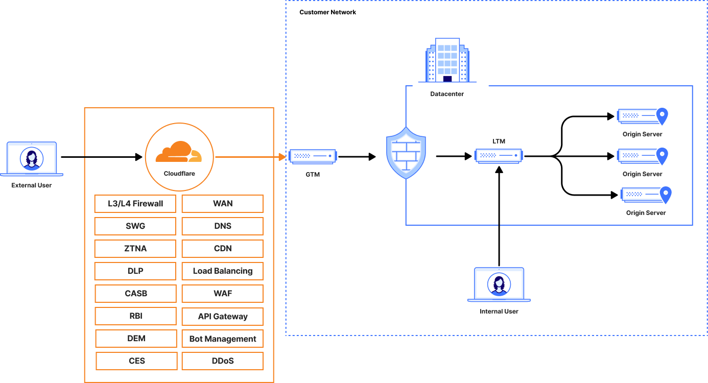 - Cloudflare Private Load Balancing: Replaces LTM for internal applications, accessible only to authenticated users.